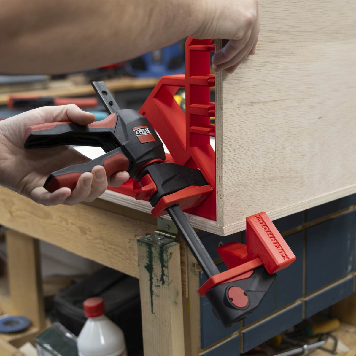 Der Eckwinkel XL ist das perfekte Zusatzmodul für den Montagewinkel XL. In Kombination mit einer Bessey Einhandzwinge EZ360 lassen sich zwei Werkstücke präzise mit nur einer Hand verbinden und fixieren. Maximale Kontrolle, maximale Effizienz – echtes Einhand-Upgrade für deine Werkstatt.