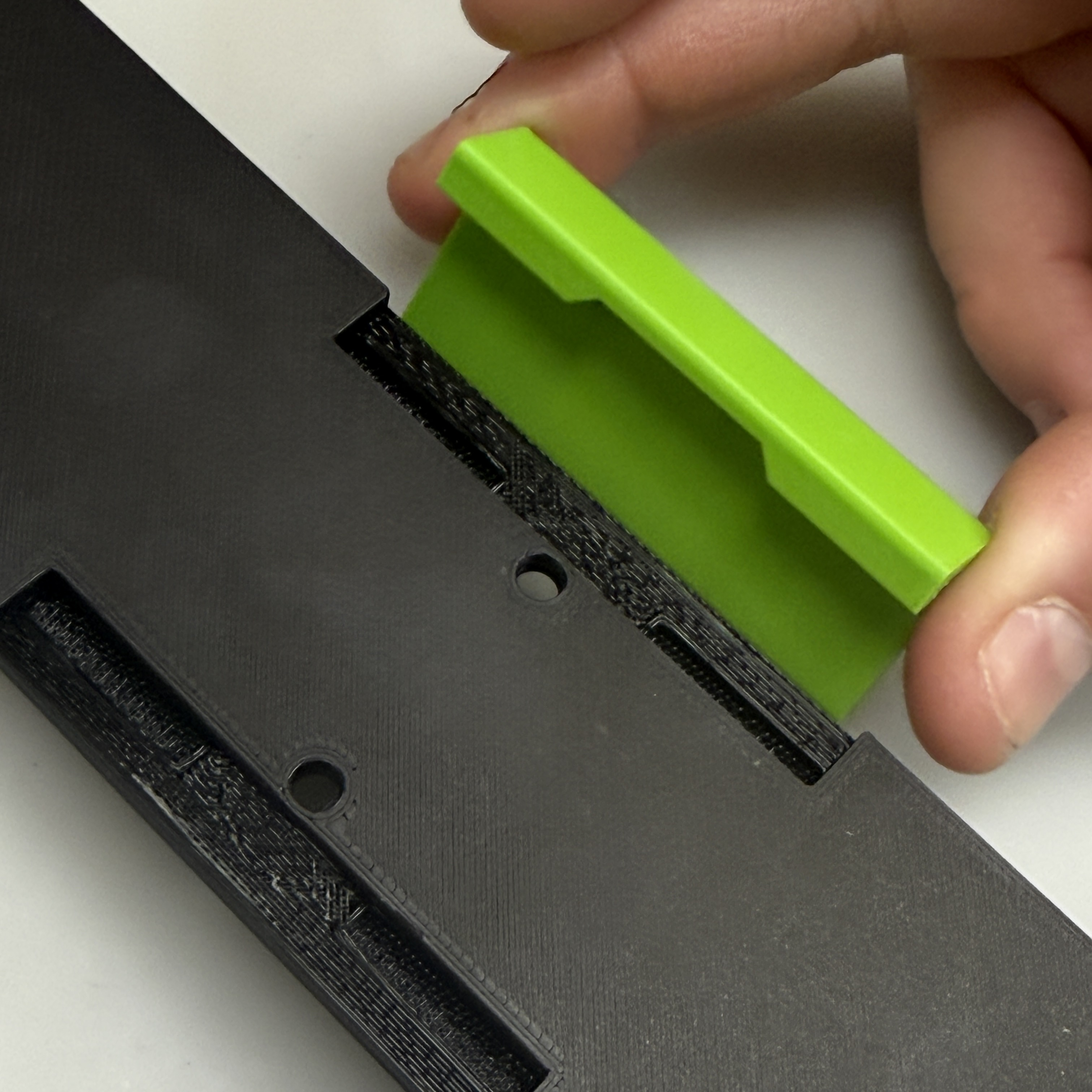 Dieser wird einfach in die Nut des Halters eingesteckt.