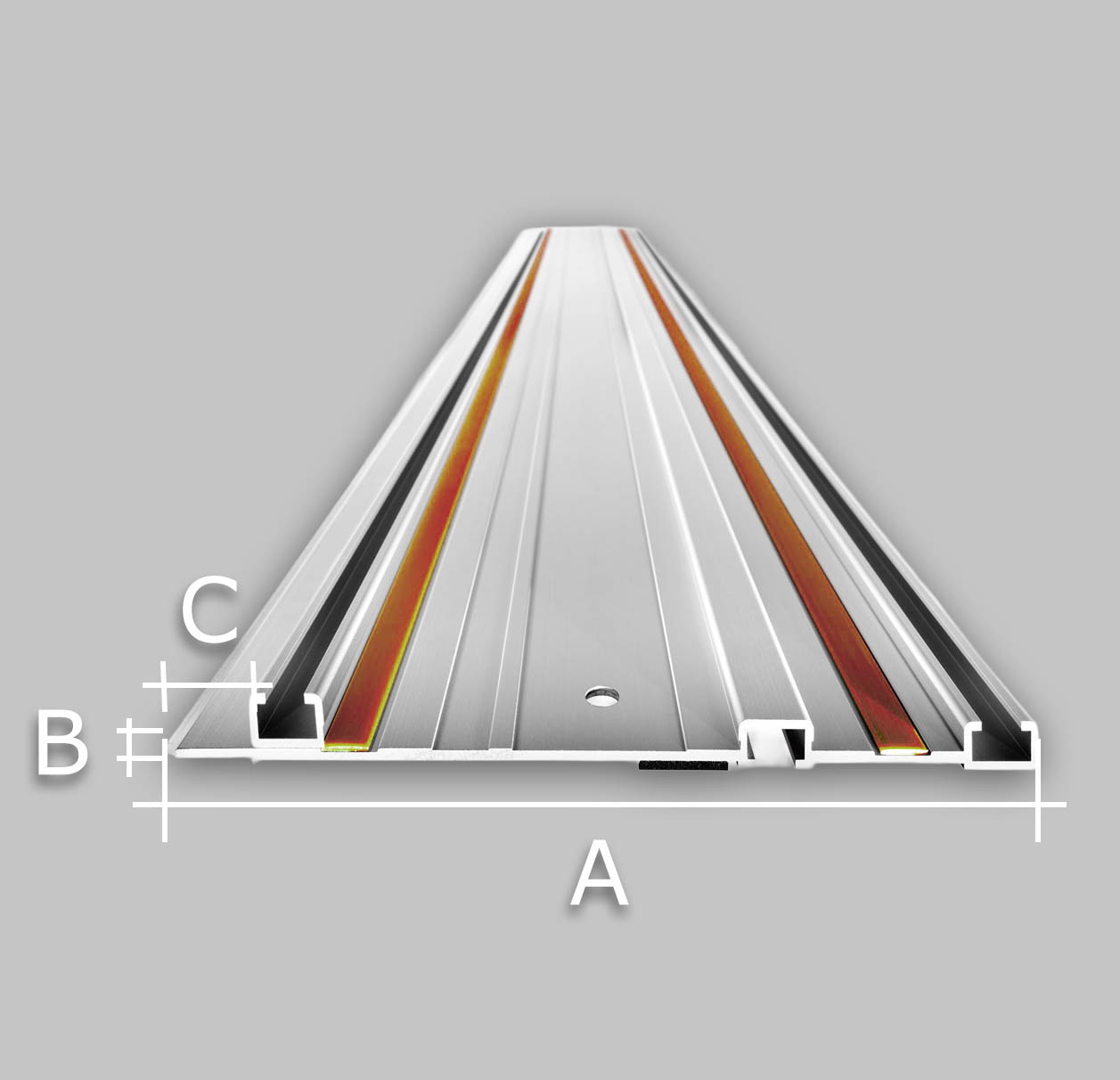 Bestelle den Halter einfach auf Anfrage und übermittle mir die Marke der Führungsschiene sowie die Maße A–C (manche FS haben noch eine seitliche Nut zu der ich den Abstand C benötige).