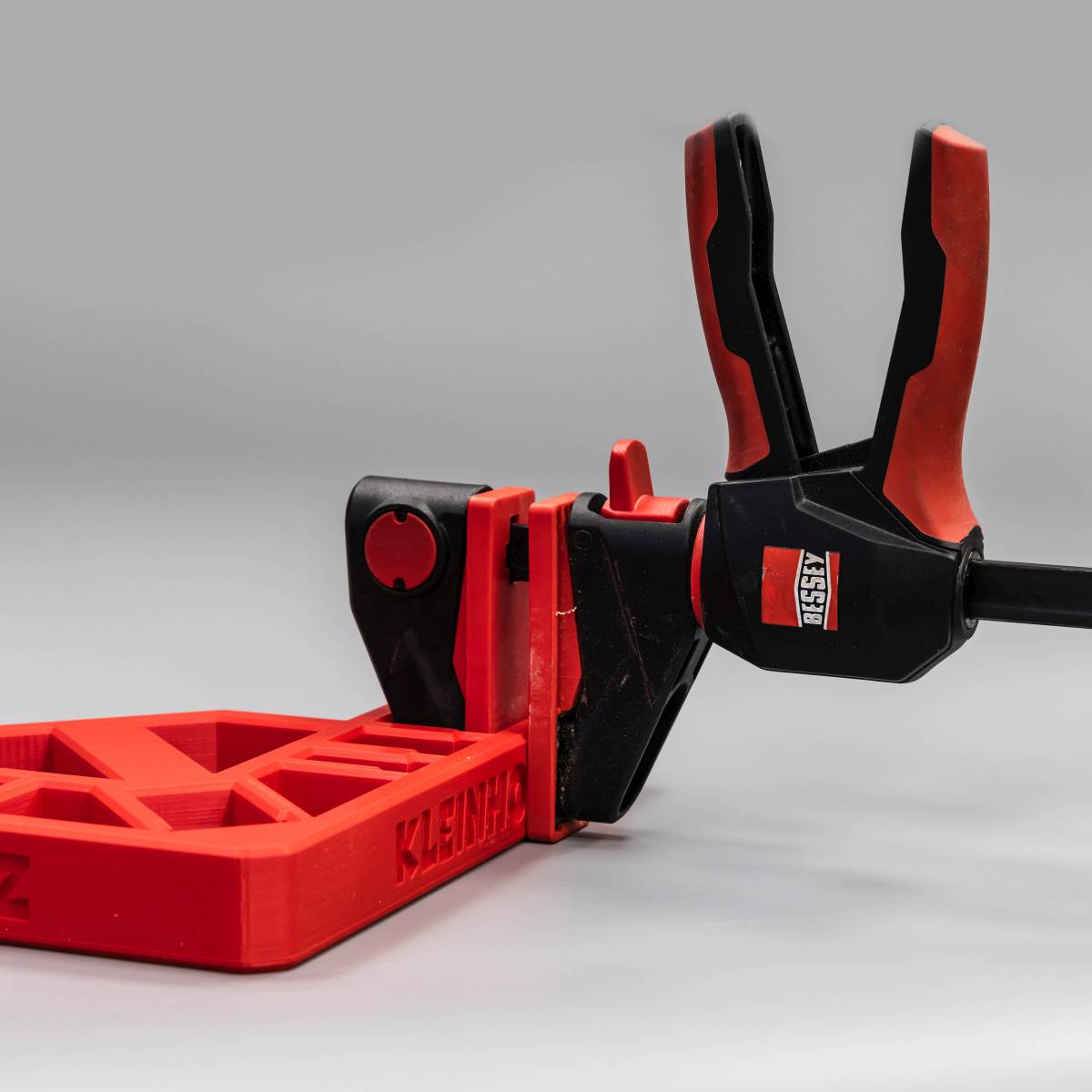 Für besonders kräftige Fixierungen ist der Montagewinkel XL zudem kompatibel mit Bessey Einhandzwingen EZ360. Damit kannst du auch schwere oder spannungsreiche Werkstücke zuverlässig halten.