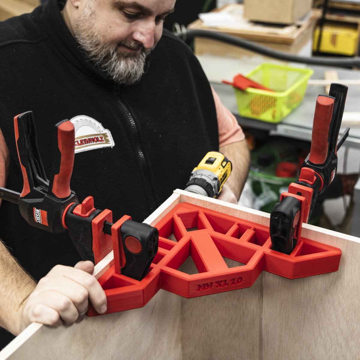 Der Montagewinkel XL wurde speziell für größere Werkstücke und höhere Spannkräfte entwickelt. Als konsequente Weiterentwicklung des bewährten Montagewinkels 2.0 bietet er deutlich mehr Auflagefläche, mehr Flexibilität bei der Zwingenwahl und noch stabileres Arbeiten – perfekt für anspruchsvolle Holz- und DIY-Projekte.